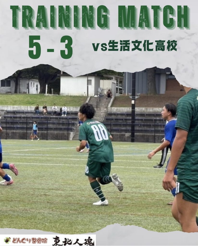 試合速報(練習試合) Tweet 【練習試合】 vs生活文化高校(30min×3) @青葉山グラウンド 結果:5-3(2-1/1-1/2-1)○ 得点者:上原(山本)、三井(山本)、遠藤蓮(荒川)、吉田(遠藤蓮)、渡邉 【渡邉健貢のコメント】 しっかり点をとって勝つことは出来たが、個人の技術においては相手に劣っているところがあった。今後より技術の高い相手と戦っていくことになると思うので、どういうプレーをすればいいか普段の練習から確認していきたい。 Instagramの詳しい投稿はこちらから